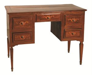 SCRITTOIO Scrittoio lastronato in noce con intarsi di legno di bosso, Francia fine XVIII secolo H 78 cm 102x50