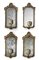 Gruppo di quattro ventole in legno intagliato e dorato a mecca con cornice decorata a motivi rocaille, bracci in bronzo. Napoli, secolo XVIII (cm 79x39). Elettrificate in epoca successiva.