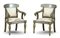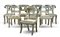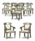 Gruppo di otto sedie e due poltrone in legno rivestito in metallo color argento