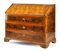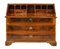 Ribalta lastronata in noce e radica di noce con filettature, fronte a tre cassetti e calatoia celante quattro tiretti e vani a giorno, piedi a mensola. Etichetta al retro (cm 133x107x62) (difetti)