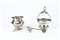 Lotto in metallo composto da due diversi secchielli da benedizione lavorati a sbalzo uniti a due aspersori (d. max cm 14,5) (difetti e rotture)