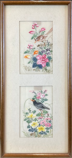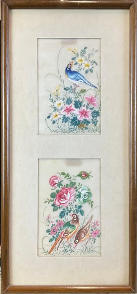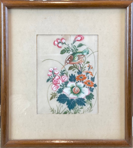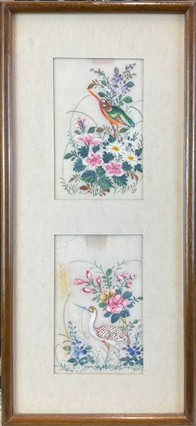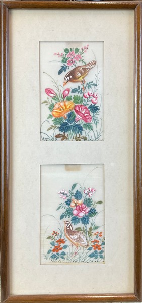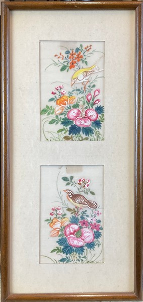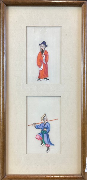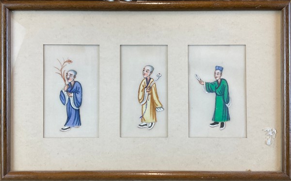 Lotto di otto pannelli con disegni su carta di riso con soggetti diversi. Cina, secolo XX (cm max 10x6) In cornici (difetti)