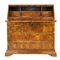 Ribalta lastronata in noce e filettata in legni vari, fronte a tre cassetti e calatoia celante tre tiretti, vani a giorno e pianetto scorrevole. Mobile costruito con elementi antichi (cm 104x102x46) (difetti e piccole mancanze)