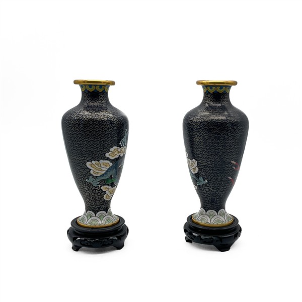 Lotto 1487 | Coppia di vasetti in metallo smaltato cloisonne con decoro a targhi tra nuvole