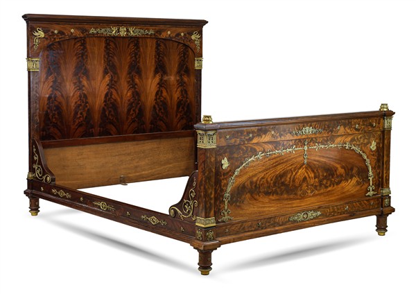 Lotto 1493 | Letto a due piazze in stile Impero impiallacciato in mogano e piuma di mogano,