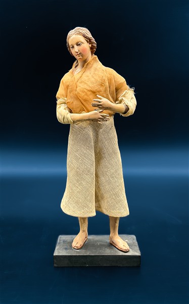 Arte napoletana, secolo XIX. Figura di popolana in terracotta policroma con par