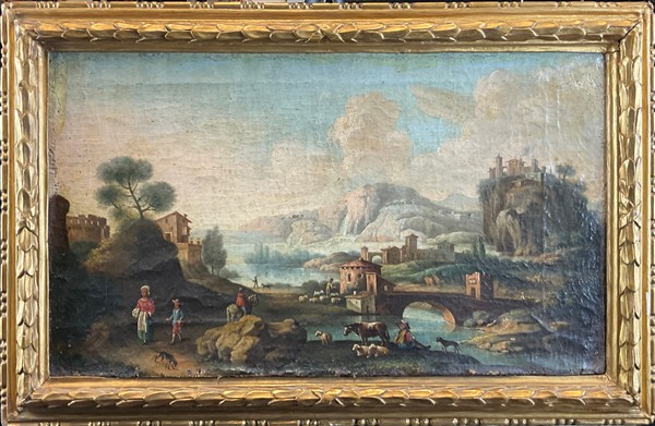 Scuola dell'Italia settentrionale del secolo XVIII "Paesaggio con pastori e ar
