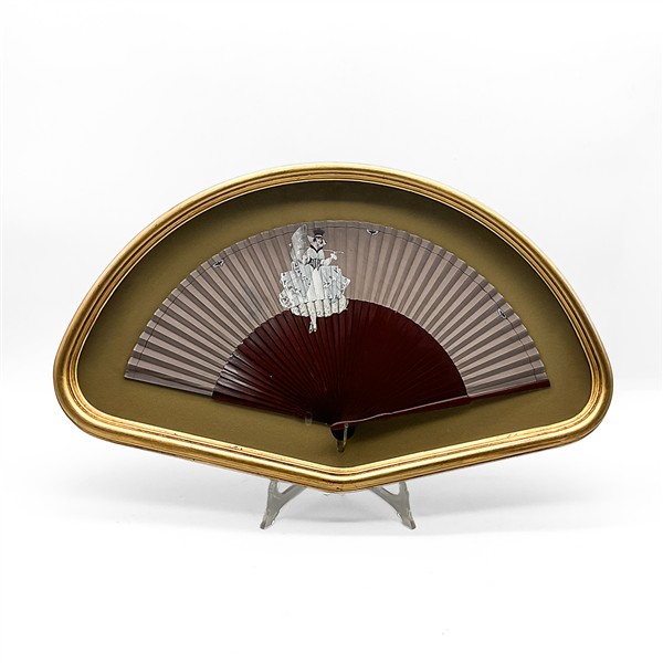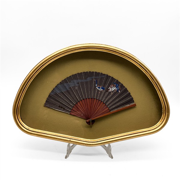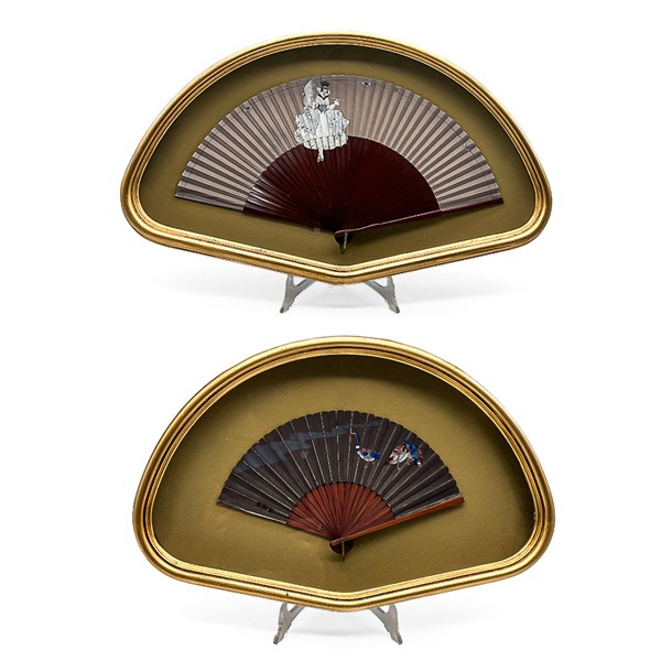 Lotto di due ventagli giapponesi entro teca sagomata (L. cm Max 37) (difetti)