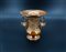 Piccolo vaso biansato in bronzo con figure in un cartiglio ed anse in forma di