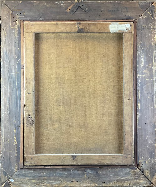 vecchie etichette sul telaio; iscrizione non decifrata al retro della cornice