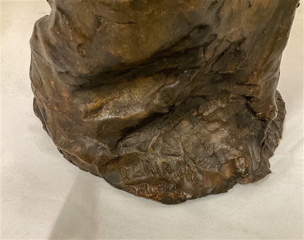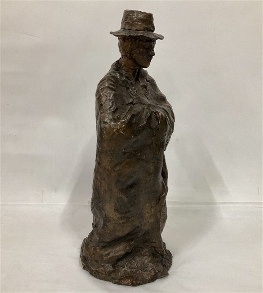 Firma indecifrata, secolo XX "Uomo con mantello" scultura in terracotta dipin