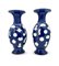 Coppia di vasi a balaustro in porcellana bianca e blu con decori a rilievo. Gia