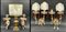 Lotto composto da lampada in legno tornito e dorato, coppia di applique a due f