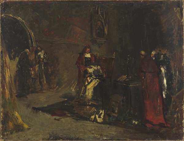 Federico Faruffini "L'inquisizione o Per la fede" 1859 olio su carta applicata a