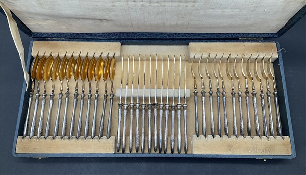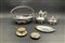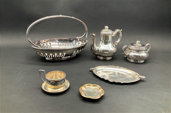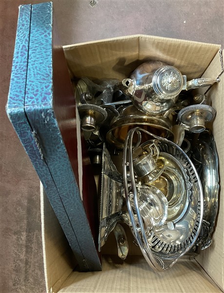 Cartone contenente numerosi oggetti in metallo argentato e altri metalli di diverso uso, forma ed epoca (difetti)
