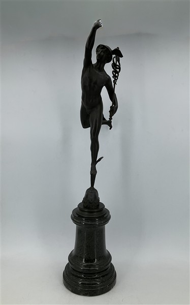 Da Giambologna Mercurio volante scultura in bronzo su base in marmo (h cm 75)
