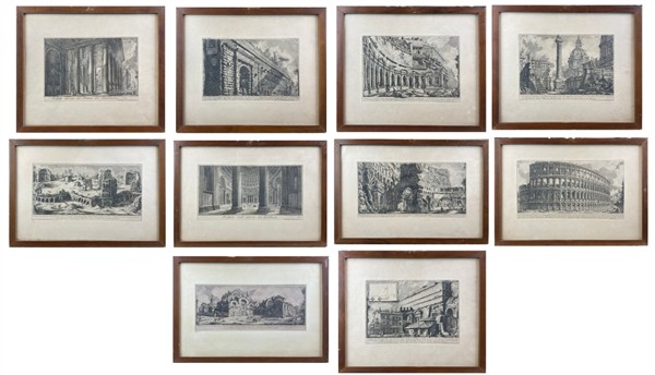 Giovanni Battista Piranesi Gruppo di dieci acqueforti dalla serie delle "Antichi