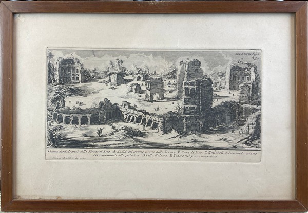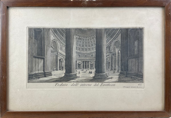 Gruppo di dieci acqueforti dalla serie delle "Antichità Romane I", in tiratura del secolo XIX, di misure differenti