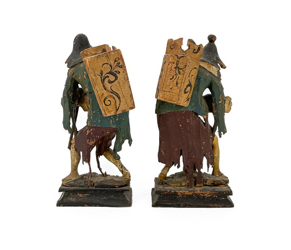 Scultore veneto del secolo XVIII. Due figure popolari di "pitocchi" in legno in