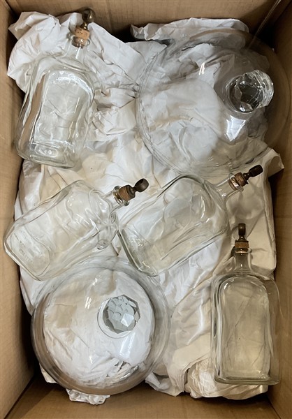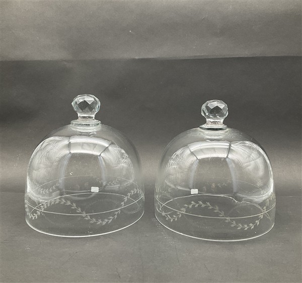 Lotto 1608 | Lotto composto da sei "cloche" in vetro inciso con presa a sfera sfaccettata e