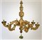 Lampadario a sei luci in legno intagliato e bracci a volute fogliate (h cm 93) (difetti e mancanze)