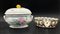 Manifatture differenti, secolo XVIII. Lotto composto da una zuppiera con coperchio dipinta in policromia a fiori, Strasburgo (cm 27x22x20), un cestino in maiolica decorata a motivi floreali, Lodi e due vasetti a calice in maiolica dipinta "al mazzetto", Ginori (h cm 9,5) (difetti, rotture e restauri)