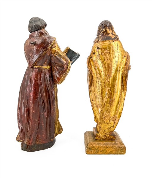 Scultore del secolo XVIII-XIX. Due figure di Santi in legno intagliato, dipinto
