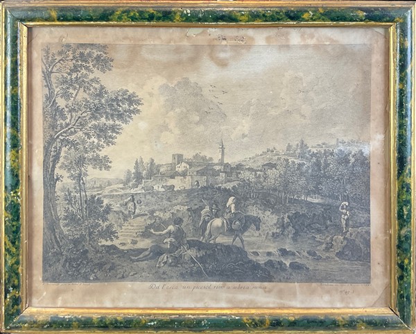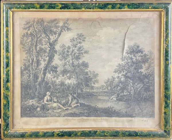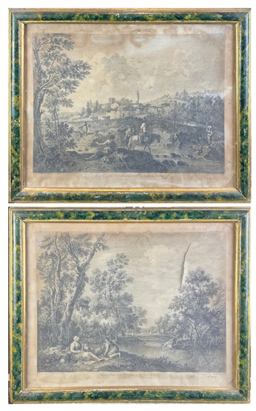 Coppia di incisioni di Francesco Bartolozzi da invenzioni di Francesco Zuccarelli raffiguranti "Paesaggi con figure"