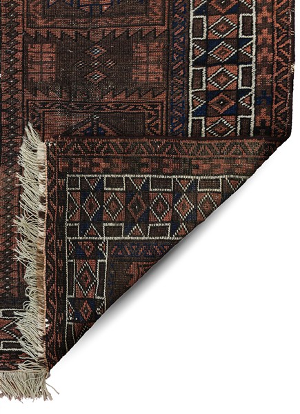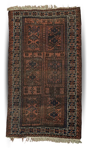 Tappeto Beluchistan, Persia, fine secolo XIX. Decoro con quattro riserve rettan