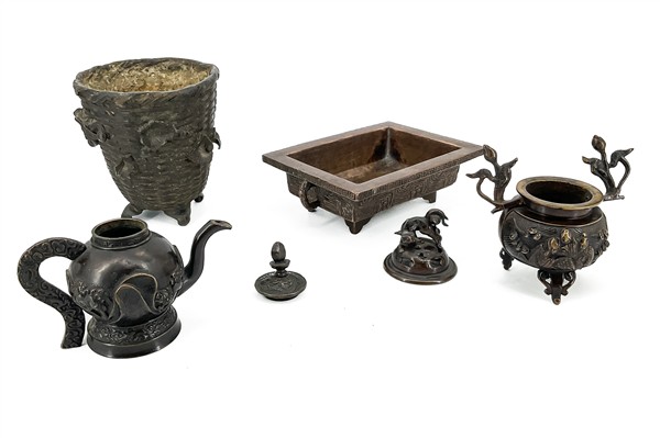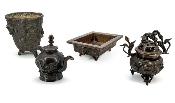 Lotto 1672 | Lotto composto da quattro oggetti diversi in bronzo. Cina e Giappone, secolo XX