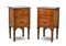Coppia di comodini a un cassetto e un'anta in legni vari in parte intagliati e filettati, gambe scanalate e rastremate. Inizio secolo XIX (cm 48x80x34) (difetti e restauri)