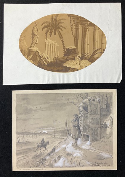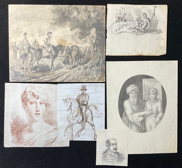 Lotto composto da numerosi disegni di autori, soggetti, tecniche e misure diffe