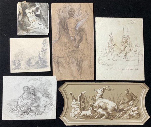 Lotto composto da numerosi disegni di autori, soggetti, tecniche e misure differenti