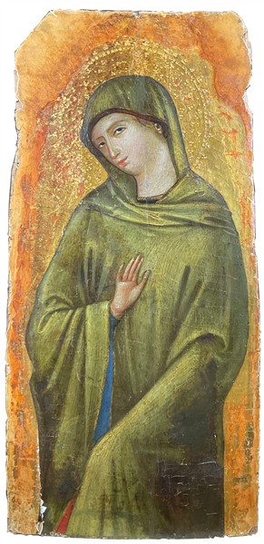 Scuola del secolo XV "Santa" tempera, olio e oro su tavola (ridotta) (cm 49,5x