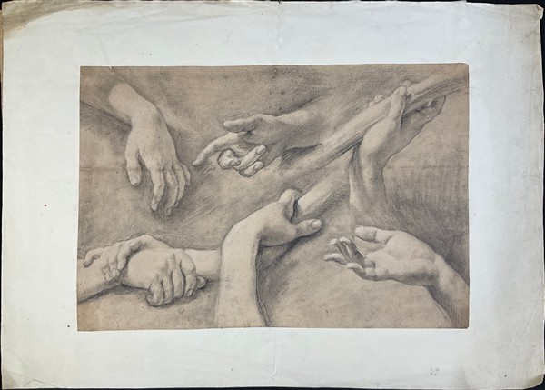Lotto composto da numerosi studi di volti, figure e mani del secolo XIX-XX, di