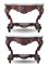 Coppia di console in mogano intagliato con quattro gambe a voluta contrapposta
