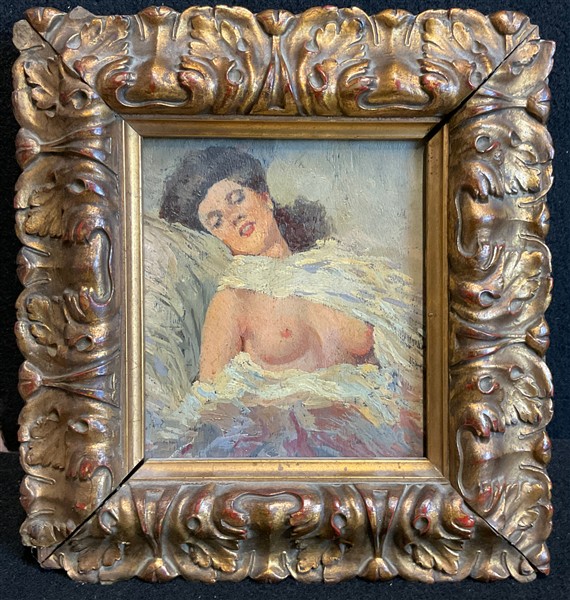 Giuseppe De Sanctis (Attribuito) "Nudo" olio su tavola (cm 15x14) al retro: is