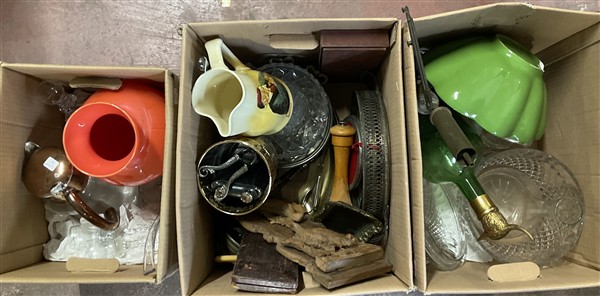 Tre cartoni contenenti numerosi oggetti di diversa fattura e epoca (difetti)