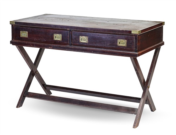 Lotto 1725 | Scrivania Navy in legno tinto mogano, due cassetti nella fascia e gambe incroci