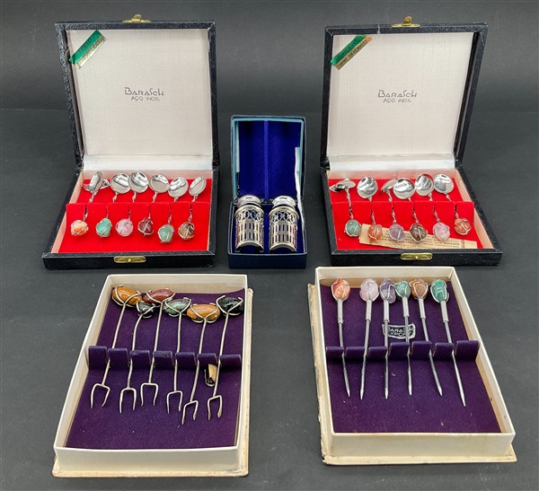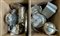 Due cartoni contenenti numerosi oggetti in metallo argentato e altri metalli di diversa forma, epoca e uso (difetti)
