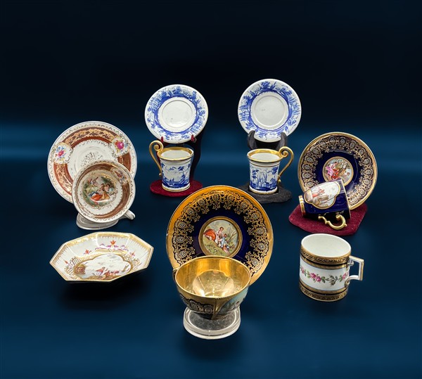 Manifatture diverse. Lotto composto da tazzine con piattini in porcellana dipin