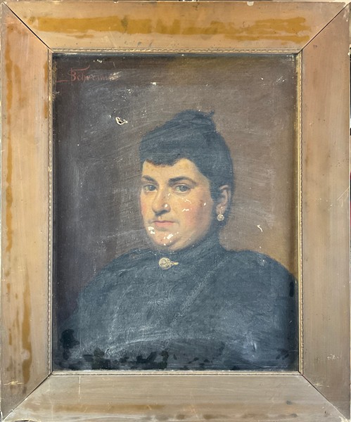 Scuola di fine secolo XIX "Coppia di ritratti" oli su tela (cm max 67x56) di
