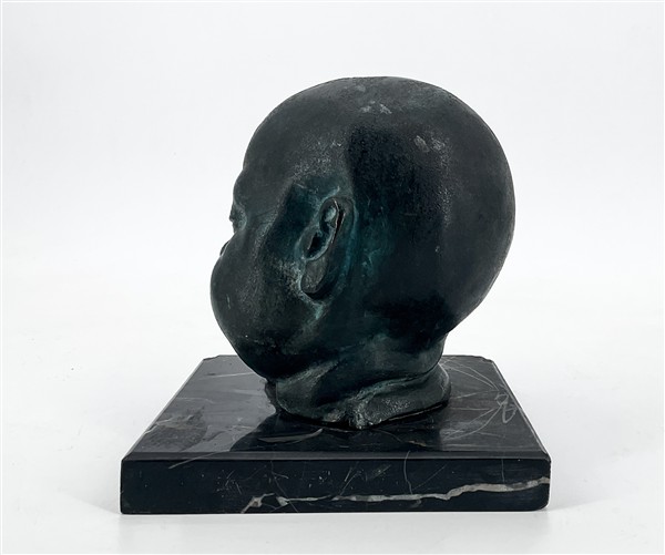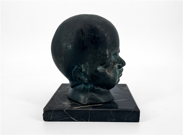 Ignoto di inizio secolo XX "Testa di bambino dormiente" scultura in bronzo pa