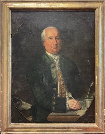 Scuola del secolo XVIII "Ritratto di letterato con cane" olio su tela (cm 95,5