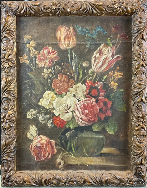 Ignoto Antico dipinto raffigurante "Vaso di fiori" olio su tela (cm 42,5x32,5)