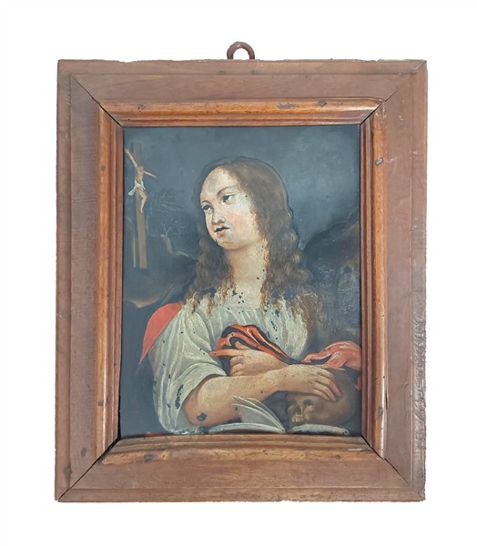 Nel gusto del secolo XVII "Maddalena orante" olio su lavagna (cm 28x21,5) etic