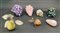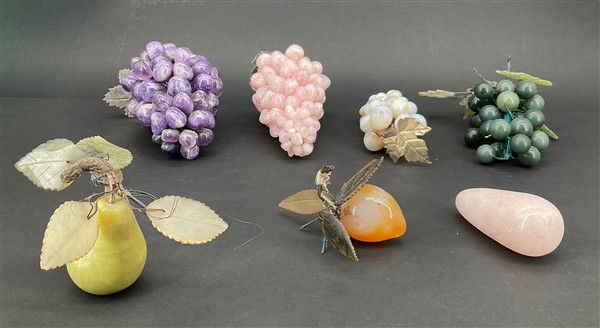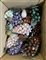 Cartone contenente numerosi oggetti in pietra dura di diversa forma e decoro (d