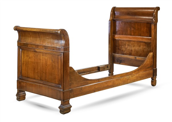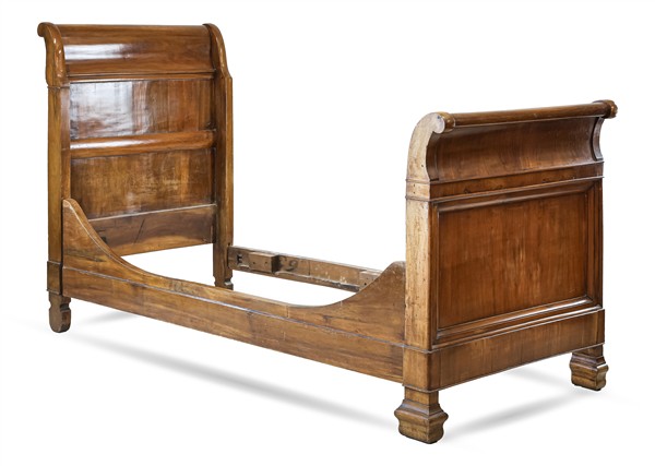 Coppia di letti a barca in noce con pediera e testiera sagomate. Secolo XIX (cm