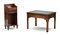Lotto composto da un tavolino inglese in mogano con piano in pelle impressa e un cassetto nella fascia (cm 70x48x50) ed un piccolo comodino a due cassetti e vano a giorno (cm 30x70x23) (difettie mancanze)