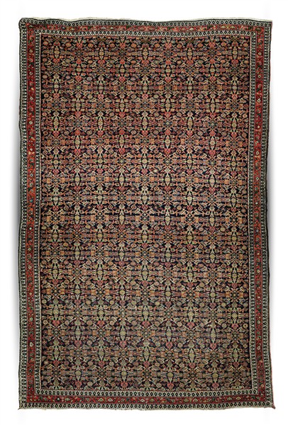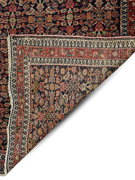 Tappeto Senneh, Persia, inizio secolo XX. Decoro Herati su fondo blu notte (cm 191x120) (difetti)